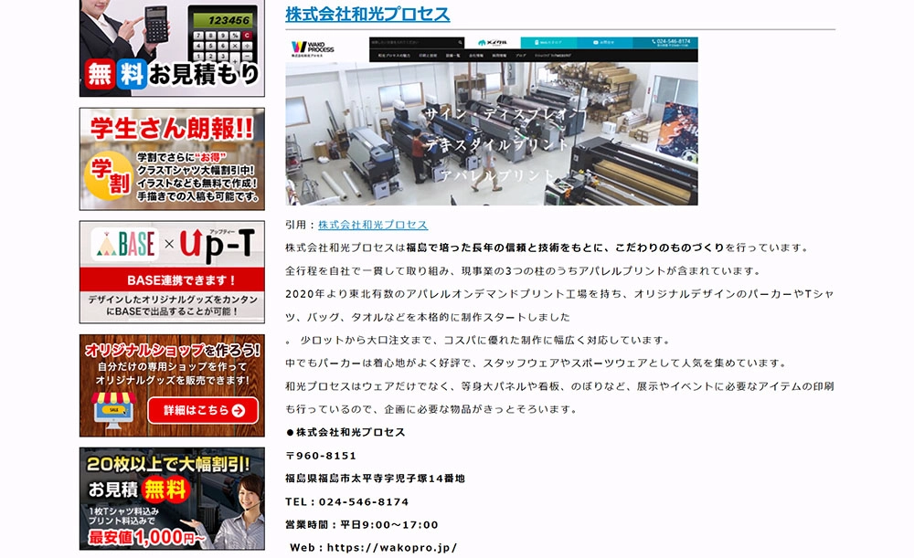 「福島県でオリジナルパーカーを作れるショップ」としてピックアップしていただいています。プロの目から見ていただけたこと、本当に光栄です!